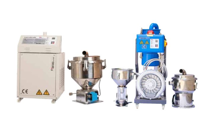 – Utiliza um motor de alta eficiência para produzir vácuo, transportando materiais plásticos de sua unidade de alimentação principal até a tremonha por meio de pressão de ar