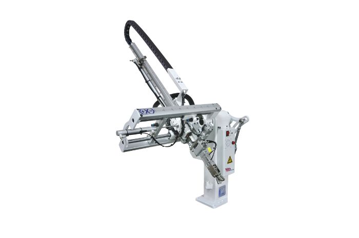 Os Swing Robots (SP Series) da EUROHEATERS são soluções de automação compactas e altamente eficientes, projetadas para operar em máquinas injetoras de 30 a 250 toneladas. Com braço único de movimento oscilante, esses robôs garantem desmoldagem rápida e precisa, reduzindo o tempo de ciclo e aumentando a produtividade em aplicações de médio porte.